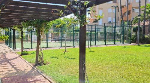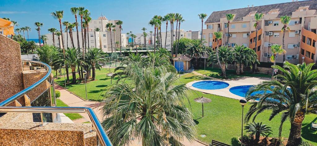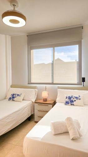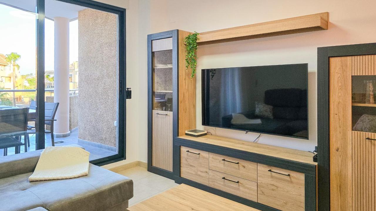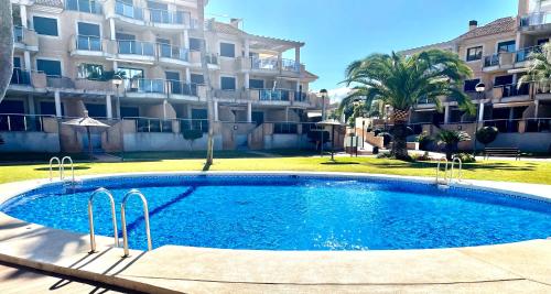 Nos ha encantado el apartamento. A dos minutos andando de una playa de arena fina. La zona comunitaria está genial con dos piscinas y pista de paddel, en una calle muy tranquila sin ruidos y cerca de sitios para salir a comer o a tomar algo. El apartamento está totalmente equipado y muy nuevo (algunas cosas las hemos estrenado). Genial la terraza con vistas a la piscina y una mesa para poder cenar seis. Tiene aire acondicionado en todas las habitaciones y ventiladores en los techos. Las camas son cómodas y hay mucho espacio en los armarios. Aunque en la zona había sitio para aparcar, se agradece tener plaza de parking en el mismo edificio, con ascensor directo. La plaza es grande y accesible. Los propietarios muy amables y atentos y en todo momento accesibles Muy recomendable, volveremos seguro.